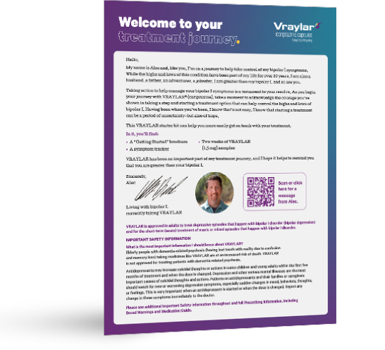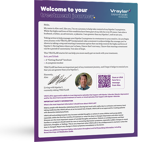 Read our FAQs to learn about bipolar I, taking VRAYLAR, and more.