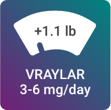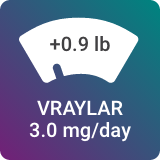 In VRAYLAR clinical trials, weight change reported was ≤1.5 lb.